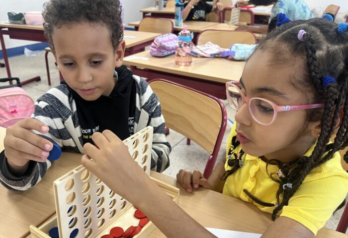 Au CP, les élèves apprennent aussi à jouer ensemble, à respecter les règles des jeux de société… Au programme en ce début d'année, apprendre à jouer aux dominos et au Puissance 4. De belles compétences à acquérir que ce soit en mathématiques ou en EMC !
