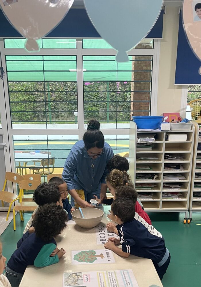 La maîtresse a mis le gâteau dans le four, et après, ça sentait trop bon dans la classe. Mmm… une bonne odeur de gâteau chaud !