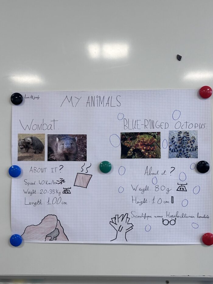 Chaque groupe a choisi un animal emblématique du continent australien et a conçu une affiche structurée et documentée présentant :