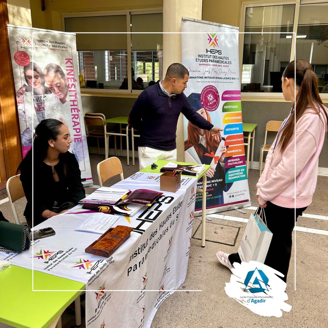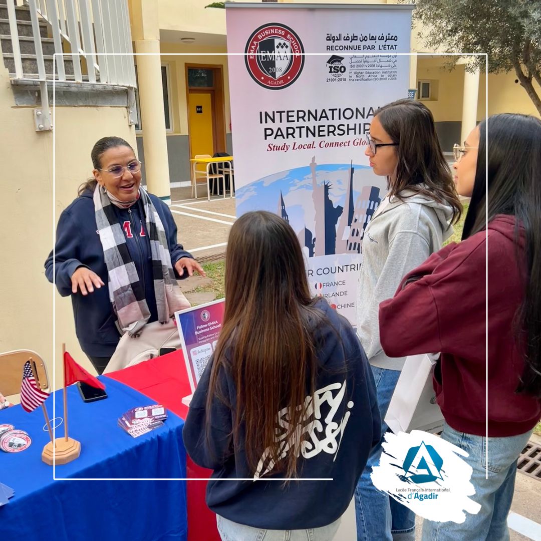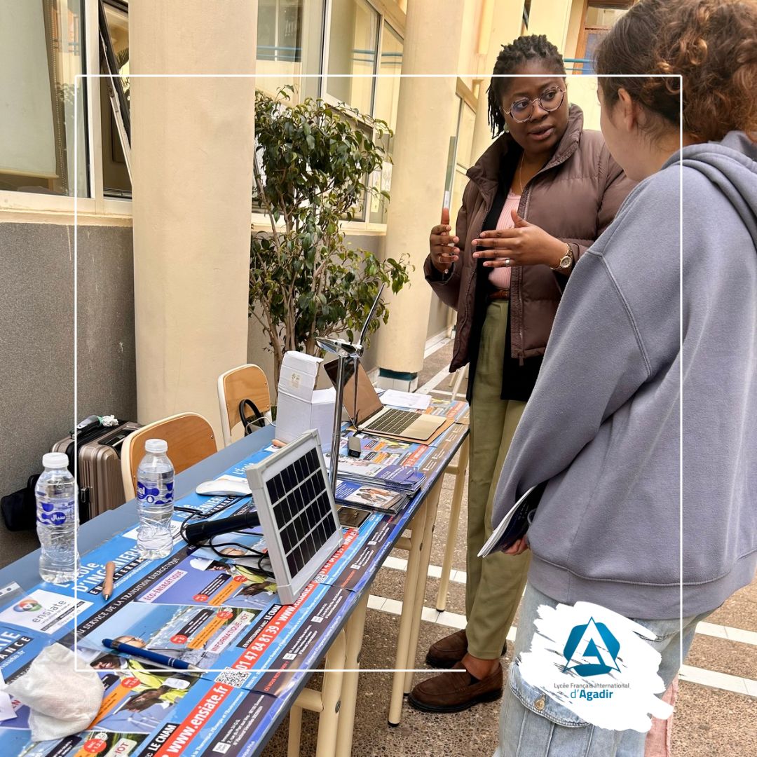 Organisé par Mme Schneider, Personne Ressource en Orientation, et Mme Briand, assistante documentaliste, avec la collaboration du Club ERA, club d’entrepreneuriat du lycée, des enseignants du secondaire, et le soutien précieux des informaticiens, le forum s’est déroulé dans le patio ainsi que dans plusieurs salles, offrant un cadre propice à des échanges riches et constructifs avec les intervenants.