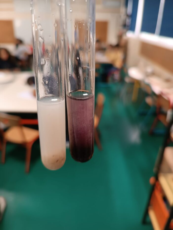 Pour clore notre chapitre en sciences sur "comment les aliments sont-ils transformés en nutriments", les élèves de CM1 ont travaillé avec Tatiana, professeur de SVT au collège et lycée, sur une expérience scientifique en rapport avec la digestion. Avec beaucoup d'enthousiasme et de concentration, les enfants ont joué les scientifiques en herbe et par la même occasion ont eu un avant goût de ce qu'ils feront au secondaire !