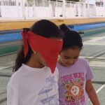 En séance d’EPS, et pendant quelques minutes, un enfant a les yeux bandés et doit avancer à tâtons sous les...
